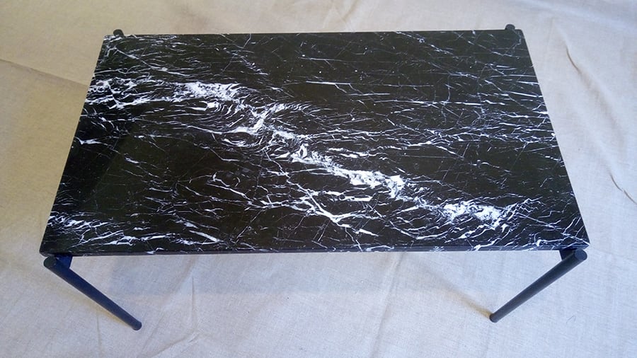 Coffee table, iron frame and marble top in the style of Pierre Guariche. Great details. An eye-catcher in any interior.